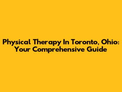 Physical Therapy In Toronto, Ohio: Your Comprehensive Guide