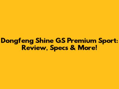 Dongfeng Shine GS Premium Sport: Review, Specs & More!