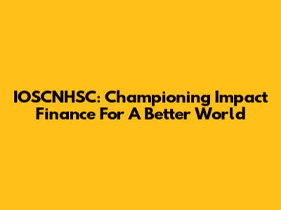 IOSCNHSC: Championing Impact Finance For A Better World