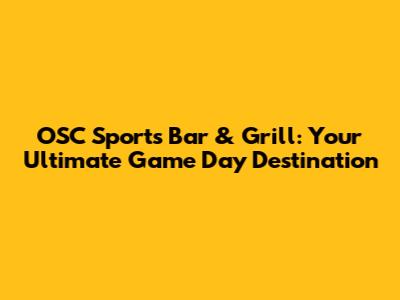 OSC Sports Bar & Grill: Your Ultimate Game Day Destination