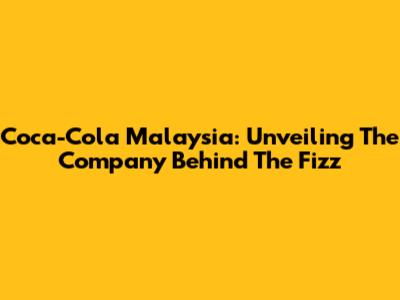 Coca-Cola Malaysia: Unveiling The Company Behind The Fizz