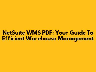 NetSuite WMS PDF: Your Guide To Efficient Warehouse Management