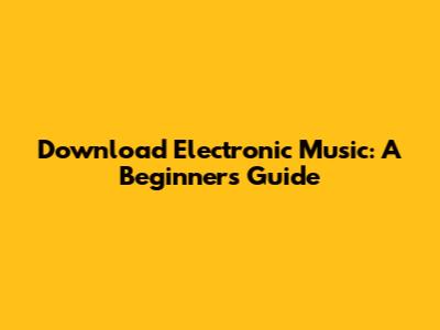Download Electronic Music: A Beginner's Guide