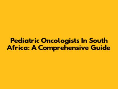 Pediatric Oncologists In South Africa: A Comprehensive Guide