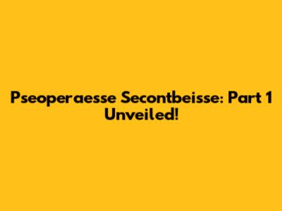 Pseoperaesse Secontbeisse: Part 1 Unveiled!