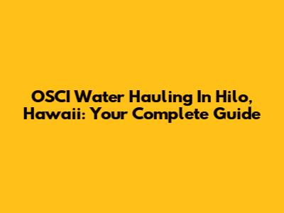 OSCI Water Hauling In Hilo, Hawaii: Your Complete Guide