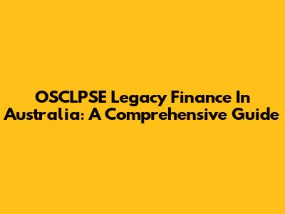 OSCLPSE Legacy Finance In Australia: A Comprehensive Guide