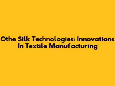 Othe Silk Technologies: Innovations In Textile Manufacturing