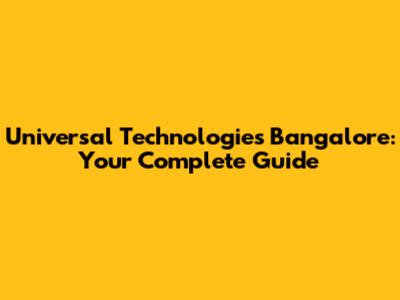 Universal Technologies Bangalore: Your Complete Guide