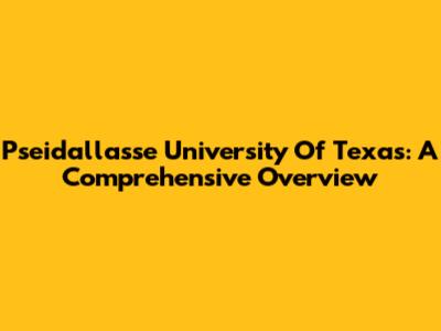 Pseidallasse University Of Texas: A Comprehensive Overview