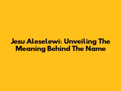Jesu Aleselewi: Unveiling The Meaning Behind The Name