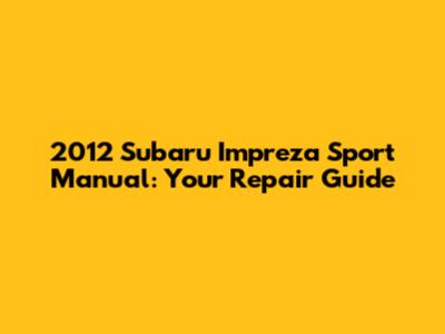 2012 Subaru Impreza Sport Manual: Your Repair Guide