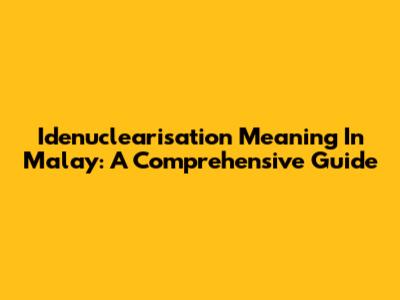 Idenuclearisation Meaning In Malay: A Comprehensive Guide