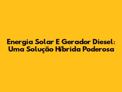 Energia Solar E Gerador Diesel: Uma Solução Híbrida Poderosa