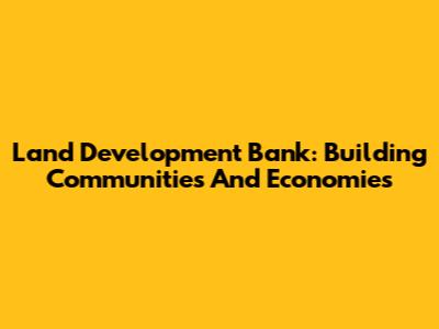 Land Development Bank: Building Communities And Economies