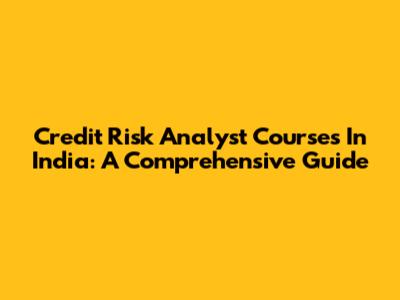 Credit Risk Analyst Courses In India: A Comprehensive Guide