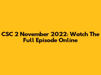 CSC 2 November 2022: Watch The Full Episode Online