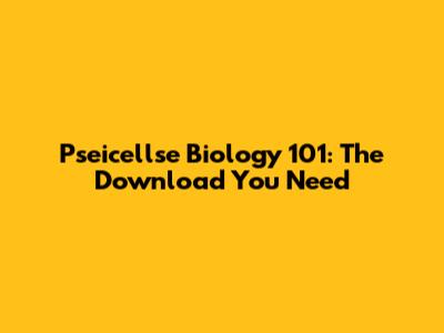 Pseicellse Biology 101: The Download You Need