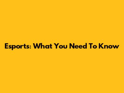 Esports: What You Need To Know