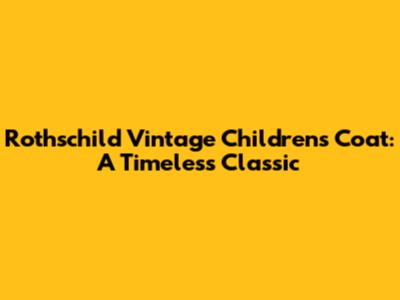 Rothschild Vintage Children's Coat: A Timeless Classic