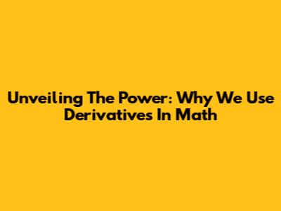 Unveiling The Power: Why We Use Derivatives In Math