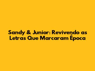Sandy & Junior: Revivendo As Letras Que Marcaram Época