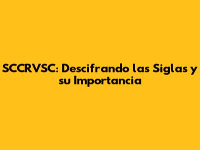 SCCRVSC: Descifrando Las Siglas Y Su Importancia
