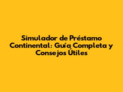 Simulador De Préstamo Continental: Guía Completa Y Consejos Útiles