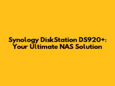 Synology DiskStation DS920+: Your Ultimate NAS Solution