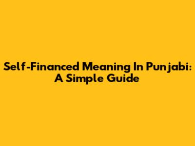 Self-Financed Meaning In Punjabi: A Simple Guide