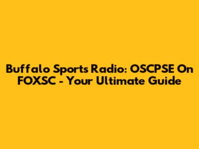 Buffalo Sports Radio: OSCPSE On FOXSC - Your Ultimate Guide
