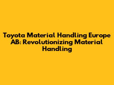 Let's dive into Toyota Material Handling Europe AB, a major player in the material handling industry. When we talk about efficient and innovative solutions for moving goods, these guys are often at the forefront. They're not just about forklifts; they're about creating comprehensive solutions that make warehouses and distribution centers run smoother, safer, and more sustainably. From automated systems to smart racking, Toyota Material Handling Europe AB is dedicated to pushing the boundaries of what's possible in the world of logistics. Their commitment extends beyond simply selling equipment; they focus on building long-term partnerships with their clients, understanding their unique needs, and providing tailored solutions that drive real results. Whether it's optimizing warehouse space, reducing energy consumption, or enhancing operator safety, Toyota Material Handling Europe AB is constantly striving to improve the material handling landscape. Their dedication to research and development ensures they remain at the cutting edge, anticipating future trends and developing solutions that meet the evolving demands of the industry. So, if you're looking to upgrade your material handling operations and achieve new levels of efficiency, it's definitely worth exploring what Toyota Material Handling Europe AB has to offer.