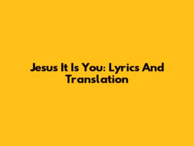 Jesus It Is You: Lyrics And Translation