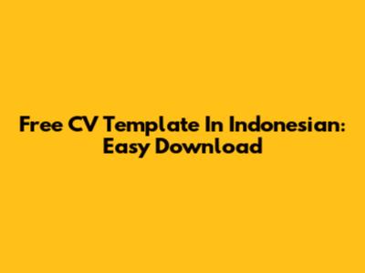 Free CV Template In Indonesian: Easy Download