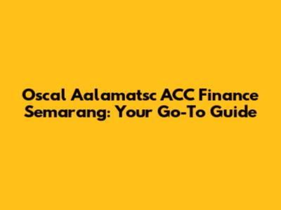 Oscal Aalamatsc ACC Finance Semarang: Your Go-To Guide