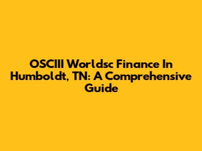 OSCIII Worldsc Finance In Humboldt, TN: A Comprehensive Guide