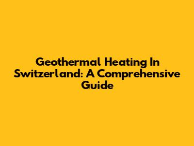 Geothermal Heating In Switzerland: A Comprehensive Guide