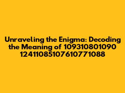 Hey everyone! Ever stumbled upon a series of numbers that just seemed… off? Like a secret code waiting to be cracked? Well, today, we're diving headfirst into the mysterious world of 109310801090 12411085107610771088. This isn't just a random string of digits; it's a hidden message, and we're going to be the ones to decode it. This article is your ultimate guide. Get ready to have your mind blown as we explore what these numbers actually represent and how we can translate them into something we can all understand. Let's get started, shall we?