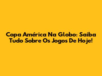 Copa América Na Globo: Saiba Tudo Sobre Os Jogos De Hoje!