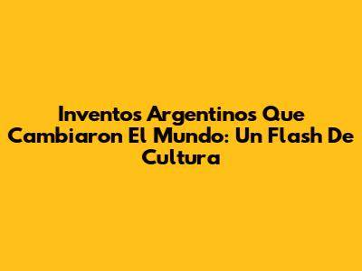 Inventos Argentinos Que Cambiaron El Mundo: Un Flash De Cultura
