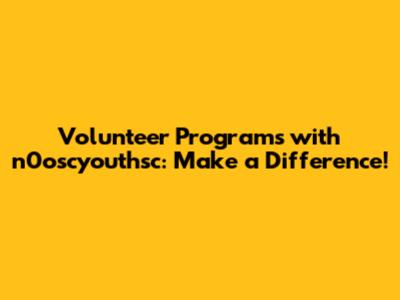 N0oscyouthsc offers a diverse range of volunteer programs to cater to different interests and skills. Whether you're passionate about environmental conservation, social justice, education, or health, there's a program that's right for you. Here's a glimpse into some of the exciting volunteer opportunities available: