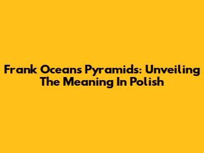 Frank Ocean's Pyramids: Unveiling The Meaning In Polish