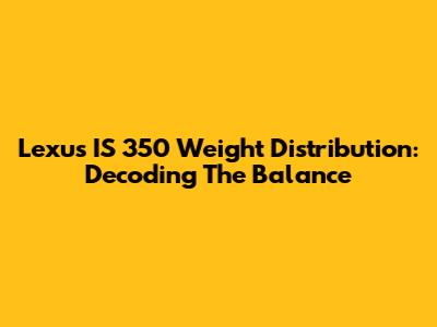 Lexus IS 350 Weight Distribution: Decoding The Balance