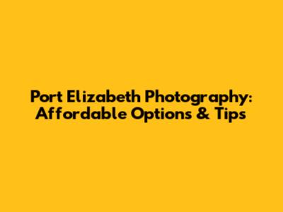 Port Elizabeth Photography: Affordable Options & Tips
