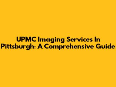 UPMC Imaging Services In Pittsburgh: A Comprehensive Guide